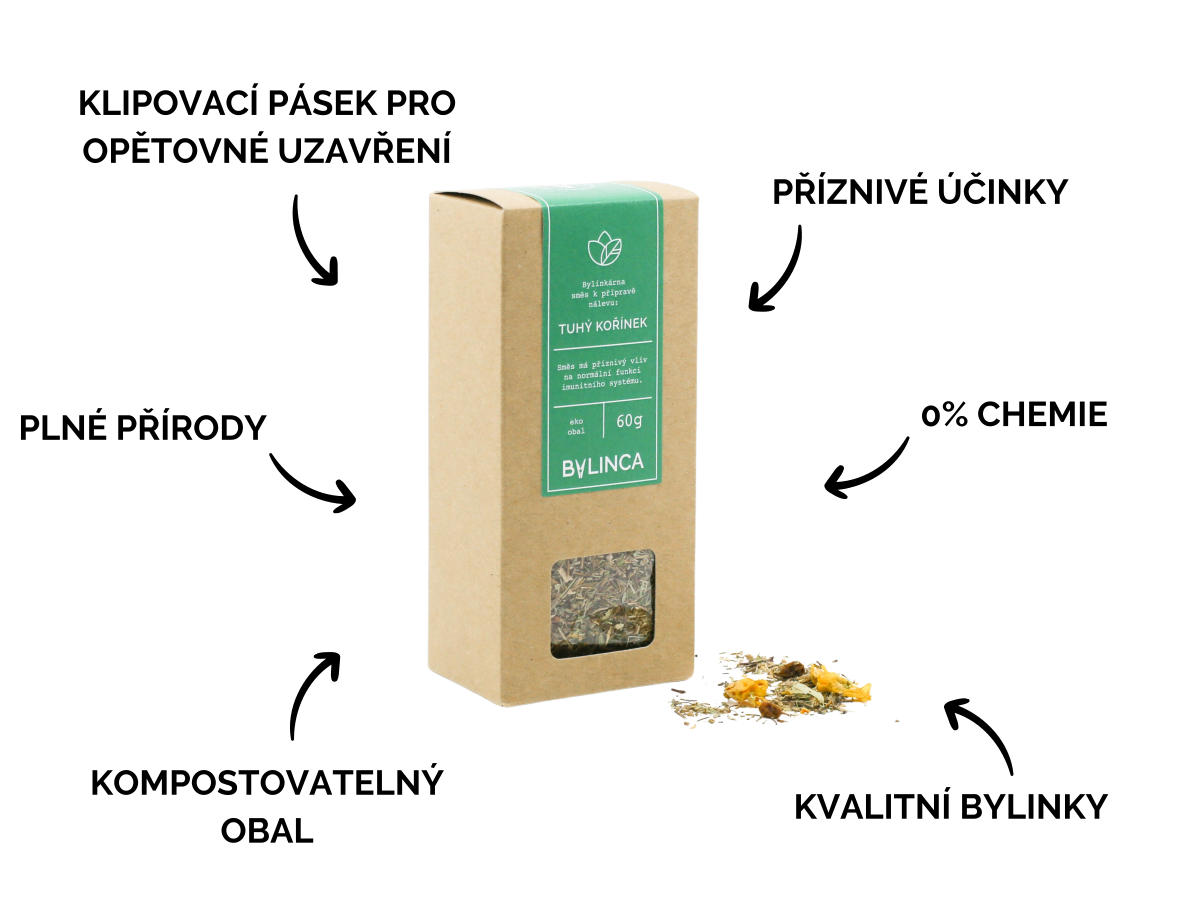 #Bylinný čaj:# Tuhý kořínek s mateřídouškou a rakytníkem. bylinková směs s příznivým vlivem na normální funkci imunitního systému příjemná chuť s mírně kořeněnými podtóny...