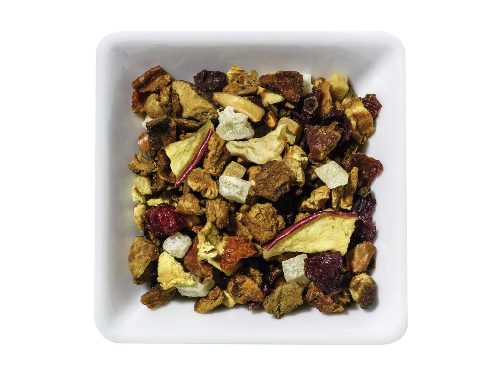 Kousky jablek tvoří základ této lahodné směsi, přinášejí autentickou sladkost a přirozenou chuť. Ananas dodává jemnou exotickou notu, kterou dokonale doplňují kyselé tóny šípku. Hrušky v kombinaci s ochuceným karamelem vytvářejí jemný, máslový podtón, který navodí pocit domácí pohody a tepla.