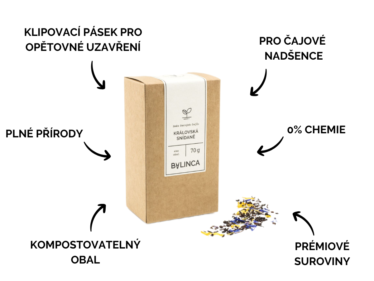 Směs černých čajů: Váš ranní rituál s královskou chutí. bohatá, nasládlá chuť směs černých čajů s okvětními lístky chrpy a měsíčku lehká vůně s květinovým nádechem Ve...